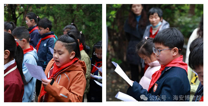 最后,全体少年齐声集体诵读《少年志则国志》,朗朗誓言回荡在墓园之中,尽显少年立志强国的蓬勃朝气。